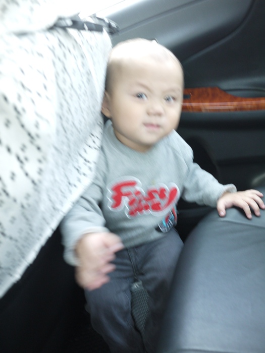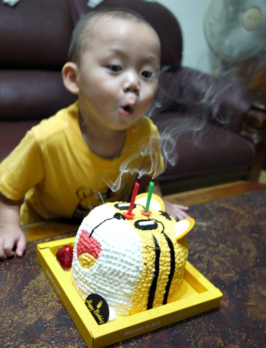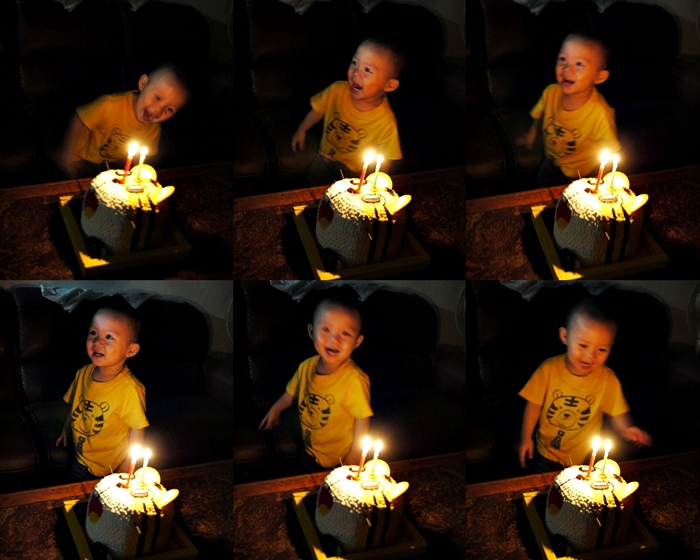 1歲生日那天,完全是懵懂無知的看大家為他唱生日快樂歌.切蛋糕