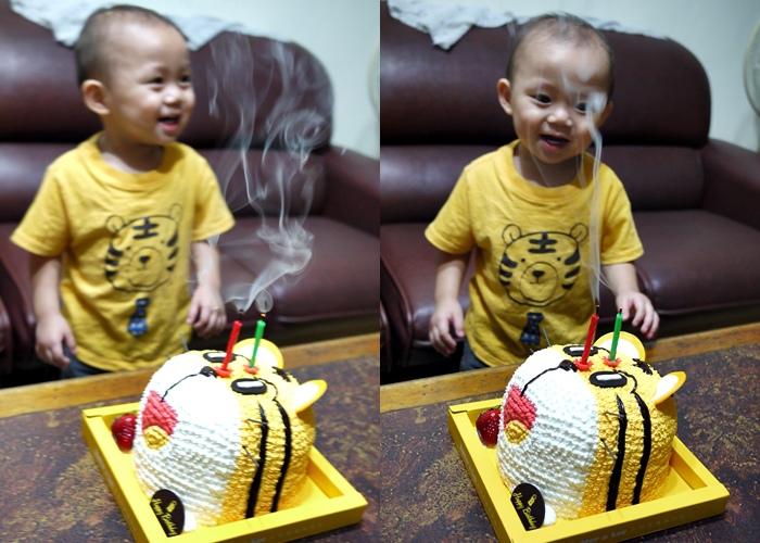 開燈後看燭煙裊裊,還意猶未盡再吹幾下,然後自己笑場~